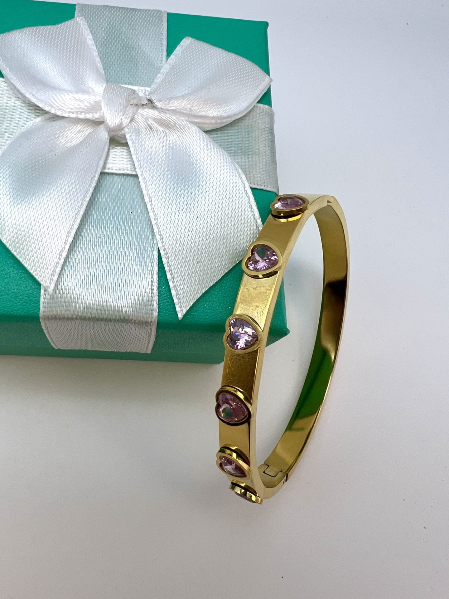 უჟანგავი ტიტანის ვარდისფერი გულებიანი სამაჯური