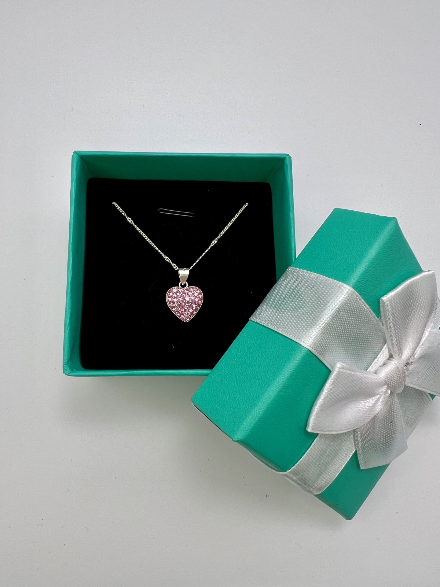 ვარდისფერი გულის ფორმის 925 ვერცხლის ყელსაბამი სვაროვსკის კრისტალებით