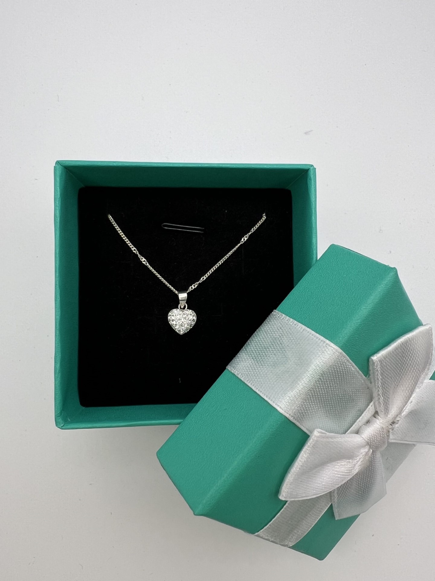 გულის ფორმის 925 ვერცხლის ყელსაბამი სვაროვსკის კრისტალებით