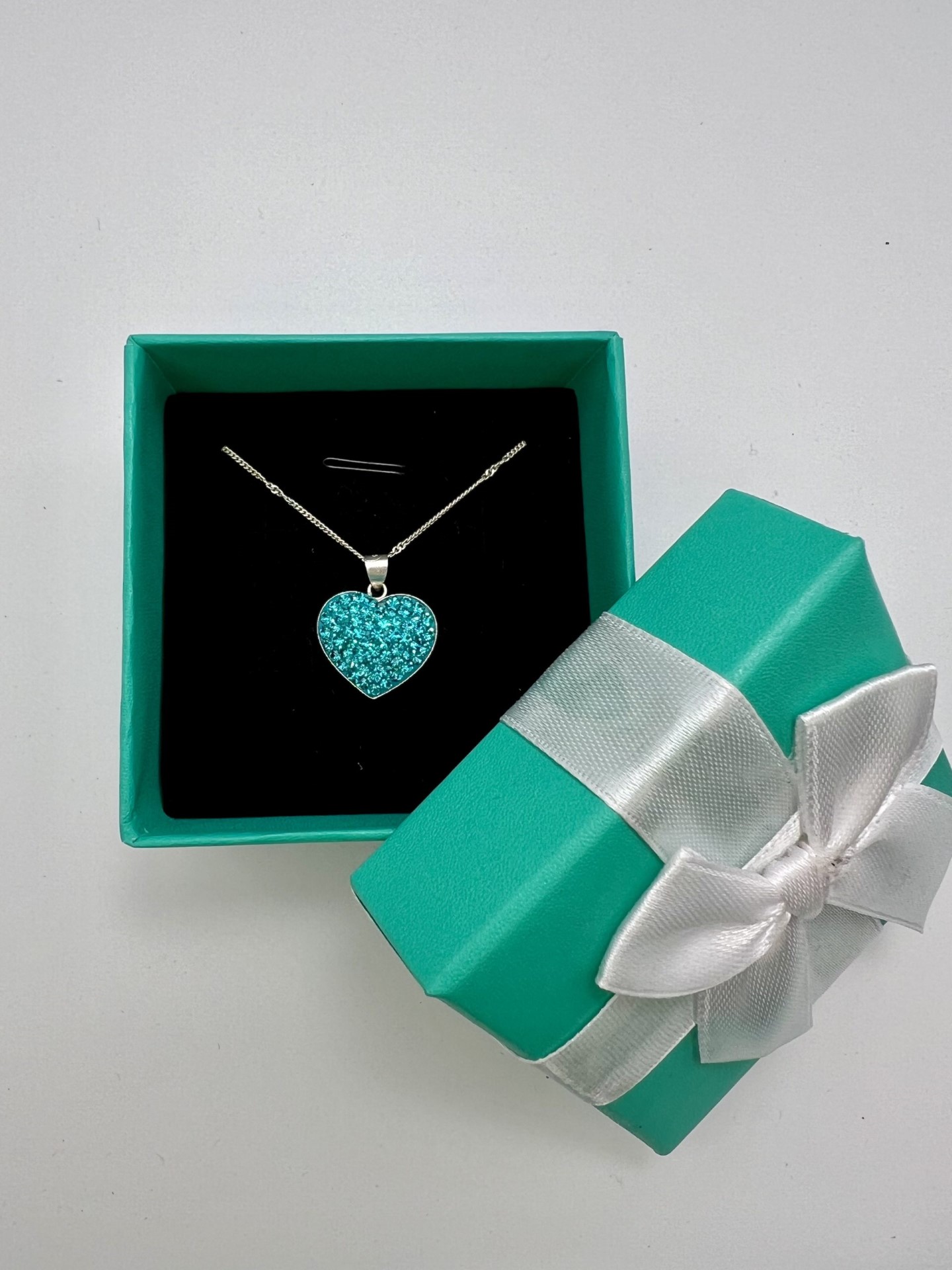 ცისფერი გულის ფორმის ვერცხლის ყელსაბამი სვაროვსკის კრისტალებით
