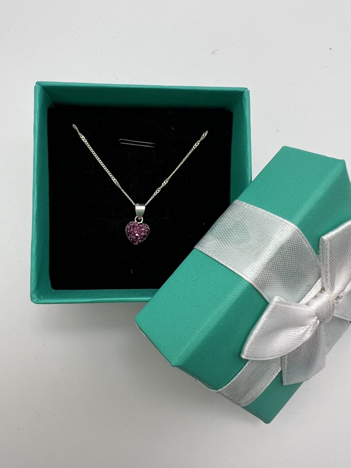 925 ვერცხლის იასამნისფერი გულის ფორმის ყელსაბამი
