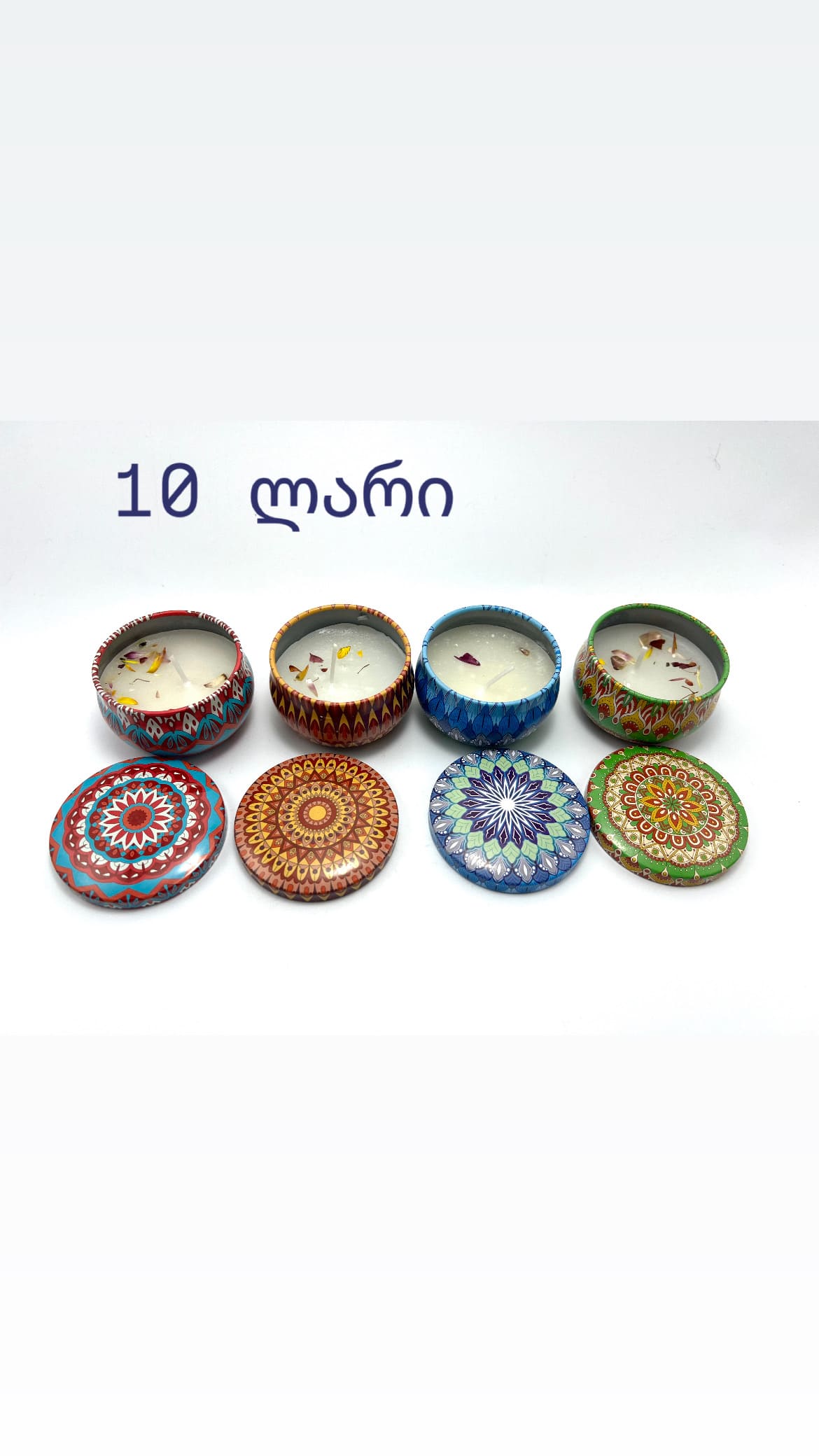სურნელოვანი სანთელი მეტალის ყუთში - 12 ლარი